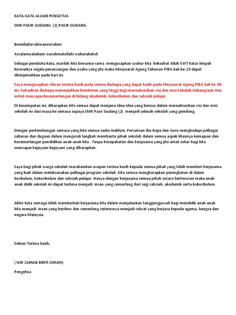 Kata aluan tuan guru sekolah kebangsaan punggai. Yang dipertua persatuan ibu bapa & guru sekolah dato' abdul razak. Kata kata aluan pengetua mp3 & mp4. Posted by mye at 11:08 pm. Dari permulaan detik perkenalan sehinggalah ke akhir hayat kami.