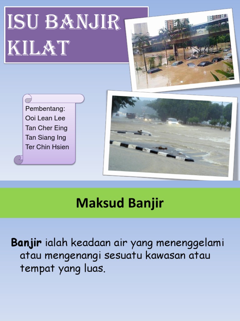 Kerajaan kaji punca, penyelesaian jangka panjang banjir kilat kl. What does banjir kilat mean in malay? بنجير) ialah keadaan air yang menenggelami atau mengenangi sesuatu kawasan atau tempat yang luas, yang biasanya kering. Oleh itu, pelbagai langkah perlu dilaksanakan. Semoga tiada kejadian yg tidak diingini.